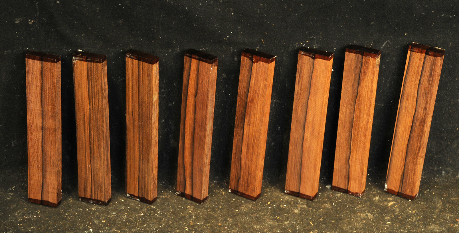This Rosewood species has a reddish-brown to dark brown colored heartwood contrasting the almost white sapwood. The dust has a sweet odor. It is an excellent furniture/case works/jewelry box wood and even though it has a medium texture it does take a nice polish. We also offer it as a musical instrument wood (see guitar fingerboards and backs & sides elsewhere on the site). It has a very "crisp" tap tone with good sustain.