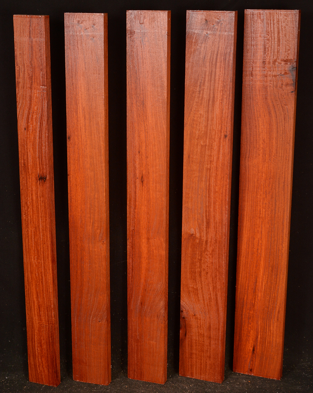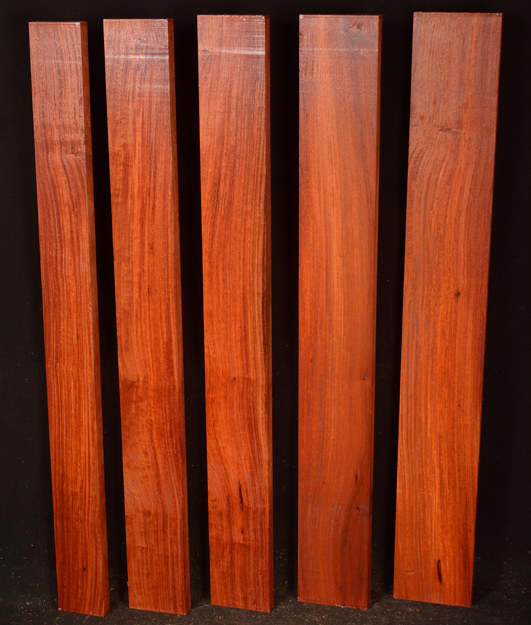 Also called Satine, Cacique, and Cardinalwood. The heartwood is a rich strawberry red, in sharp contrast to the light colored sapwood. Takes a high, lustrous finish.