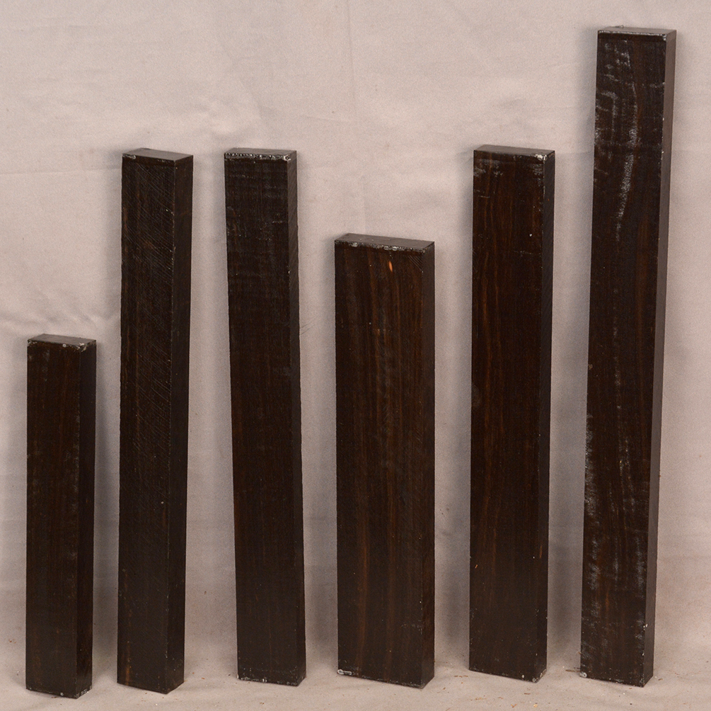 The heartwood is purplish to brownish-black with dark gray streaks giving an overall impression of being black. Lustrous with an attractive inner chatoyance. Very hard, heavy, close-grained, and virtually free from pores. Its stability and lovely tonal qualities make it an excellent instrument wood.