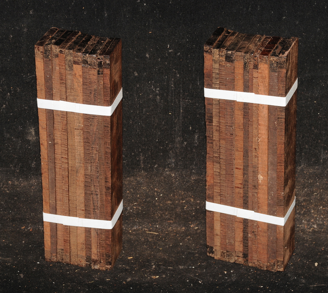 The heartwood is purplish to brownish-black with dark gray streaks giving an overall impression of being black. Lustrous with an attractive inner chatoyance. Very hard, heavy, close-grained, and virtually free from pores. Its stability and lovely tonal qualities make it an excellent instrument wood.