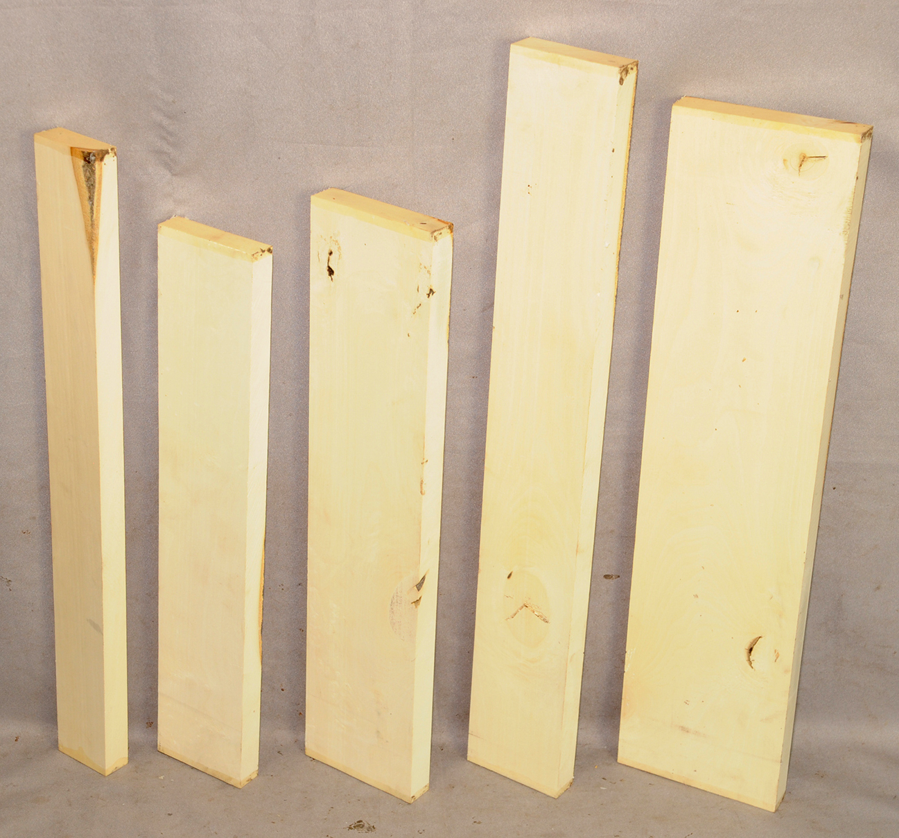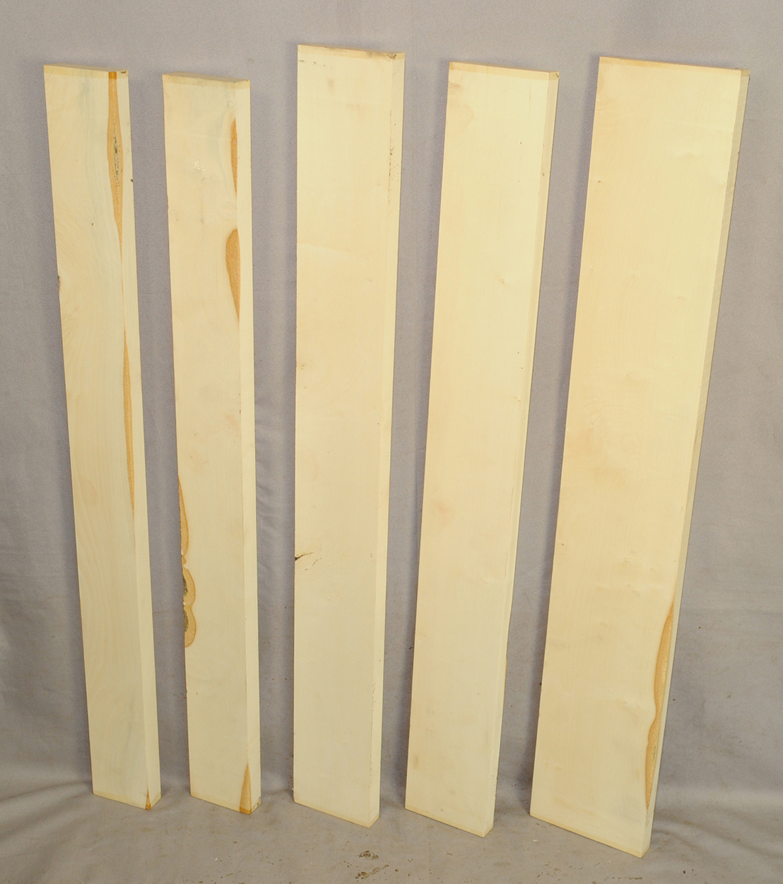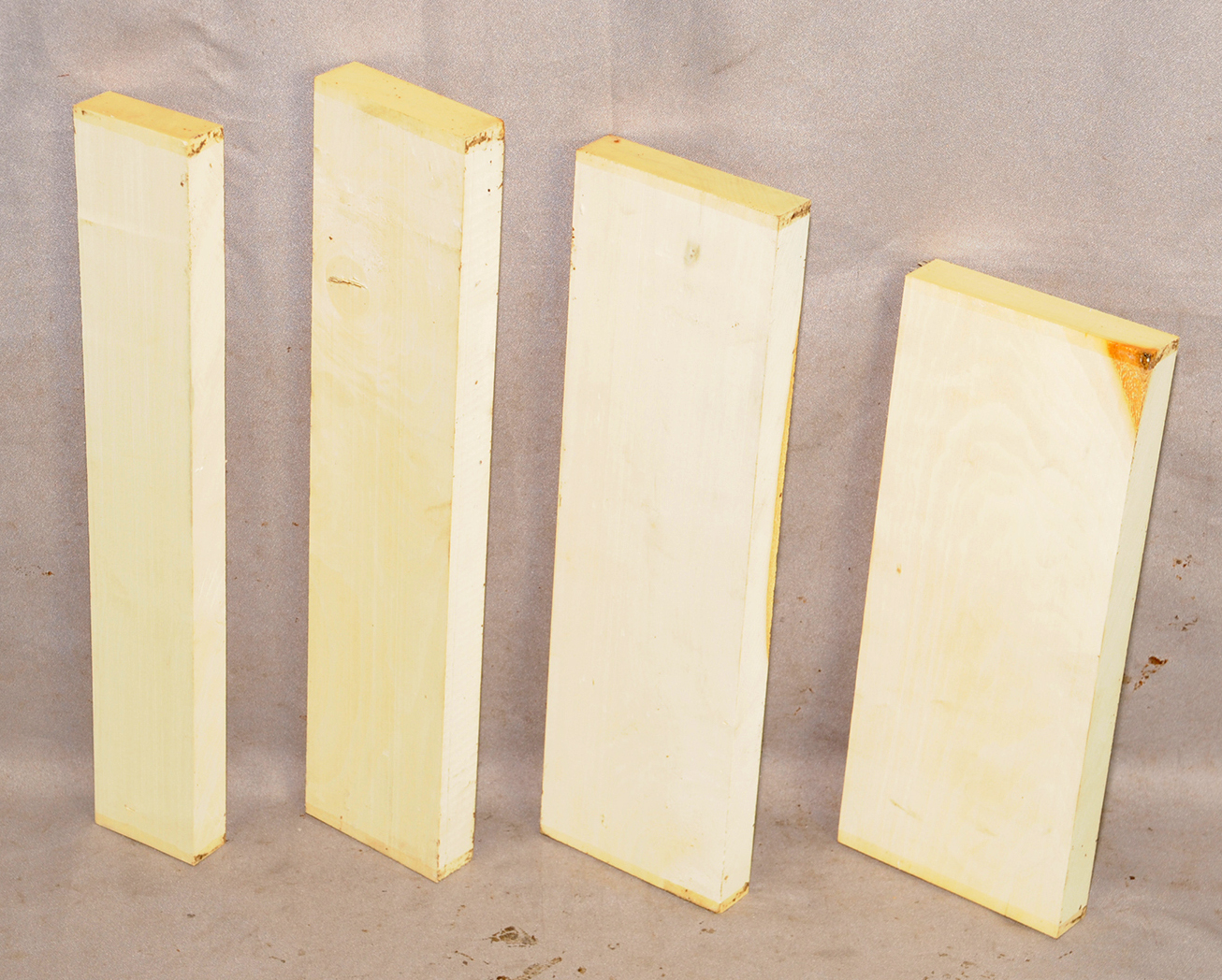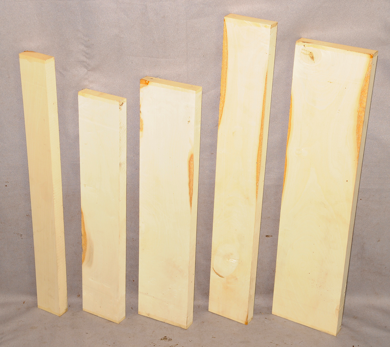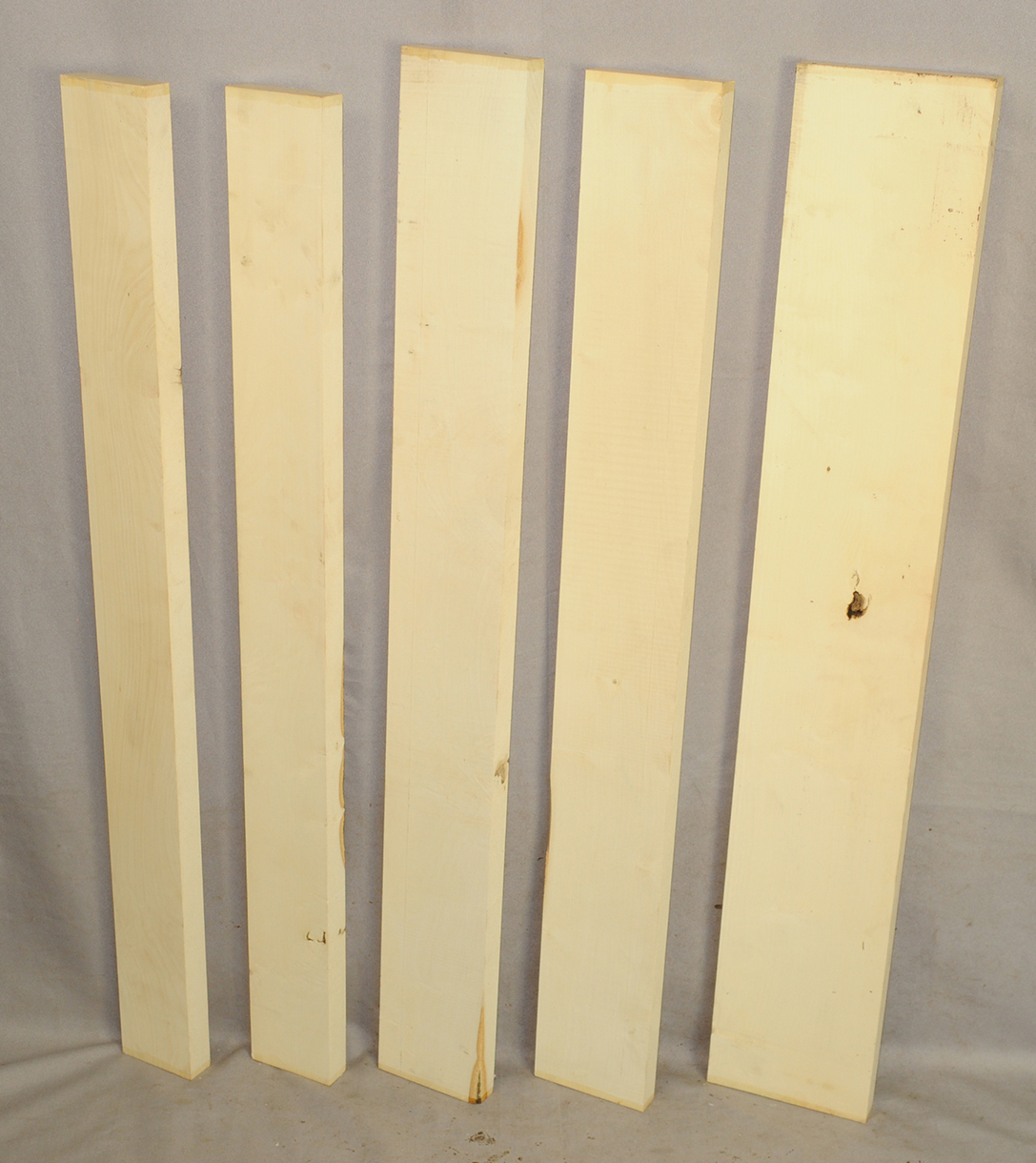 This European Maple is native to central Europe and west Asia. It is a tough, white or cream colored, fine-grained timber. It reminds me of vanilla ice cream because it is so even-colored. It works well in any grain direction. It is used for musical instruments, furniture, cabinetry, and because it is non-staining it is used for kitchen utensils, wooden spoons, rolling pins, and cutting boards. The figure is fiddleback on the quartersawn surface and more of a broken curl on the flatsawn surface. Select, quartersawn material is used for violin backs and sides and necks. Dry.