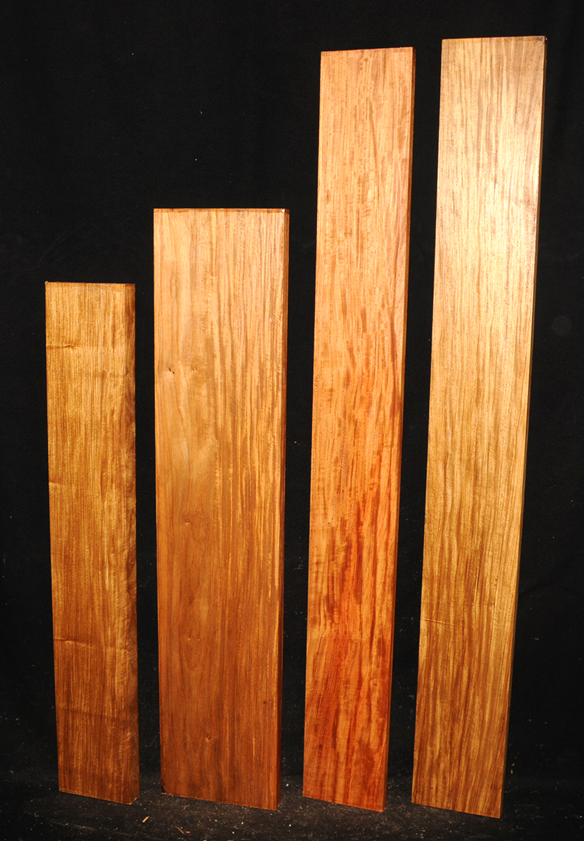 Also called Acajou, Tropical American Mahogany, and Honduras Mahogany. This medium to large tree occurs throughout Central and South America. Related to Cuban Mahogany (Swietenia mahogani) and Pacific Coast Mahogany (Swietenia humilis). It produces one of the classic furniture and cabinetmaking woods. The heartwood varies from a light reddish-brown to a rich, dark red. Generally straight grained and exceptionally stable, it is easy to machine, hand plane, sand and finish. Occasional logs produce several figures, curly, quilted, and the rare plum pudding figure which looks like large drips running down the board. Used in fine furniture and joinery, boat building, and in the guitar industry for acoustic sets and necks.