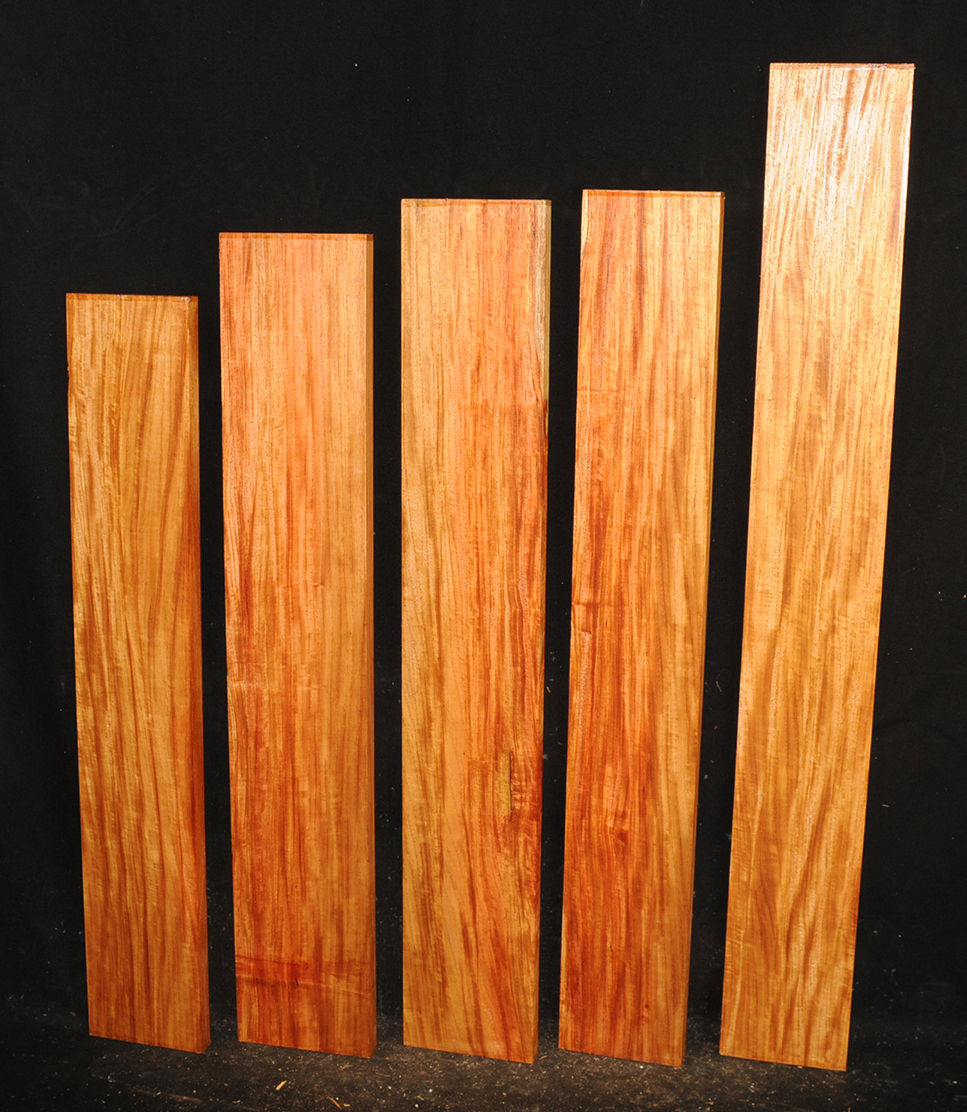 This brick-red colored West African hardwood was once one of the more common imported hardwoods but has become increasingly scarce in the last couple of years. It is easy to work, takes a nice polish and is dimensionally stable.